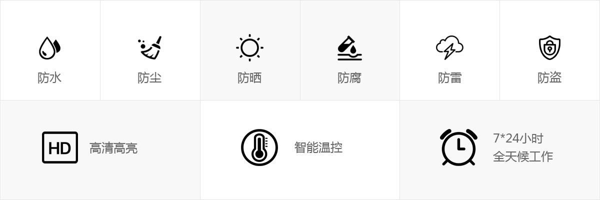 (1)外壳采用1.5mmSGCC镀锌钢板,喷涂阿克苏户外专用塑粉,防护年限10年以上。