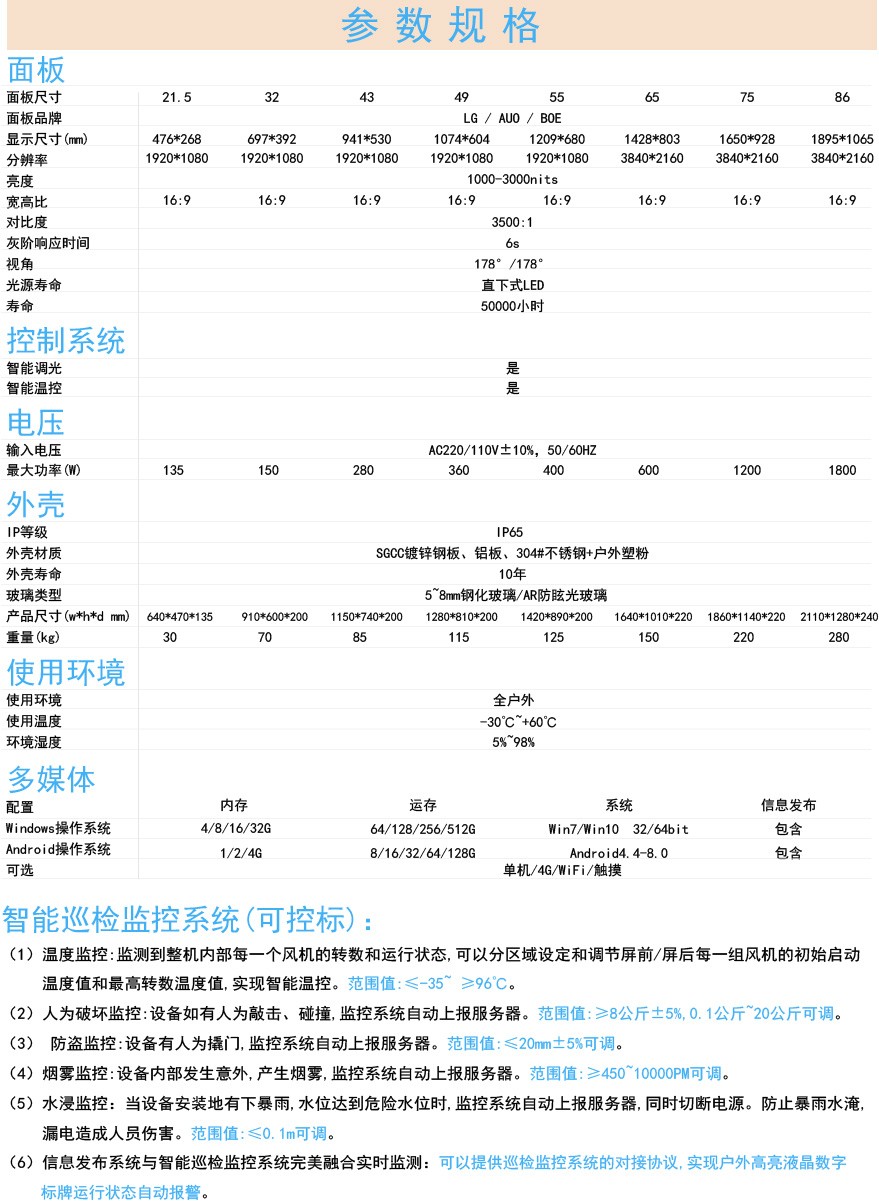 (4)配置高温自动断电保护功能,当机器内部温度异常高温,超出正常工作范围,控制系统将对显示屏等主要部件进行断电保护,同时风机继续全速运转散热,充分保护显示屏及主要零部件。